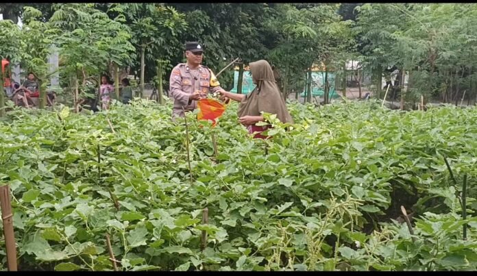 Bhabinkamtibmas Desa Senjayan Dukung Ketahanan Pangan dengan Monitoring Tanaman Terong