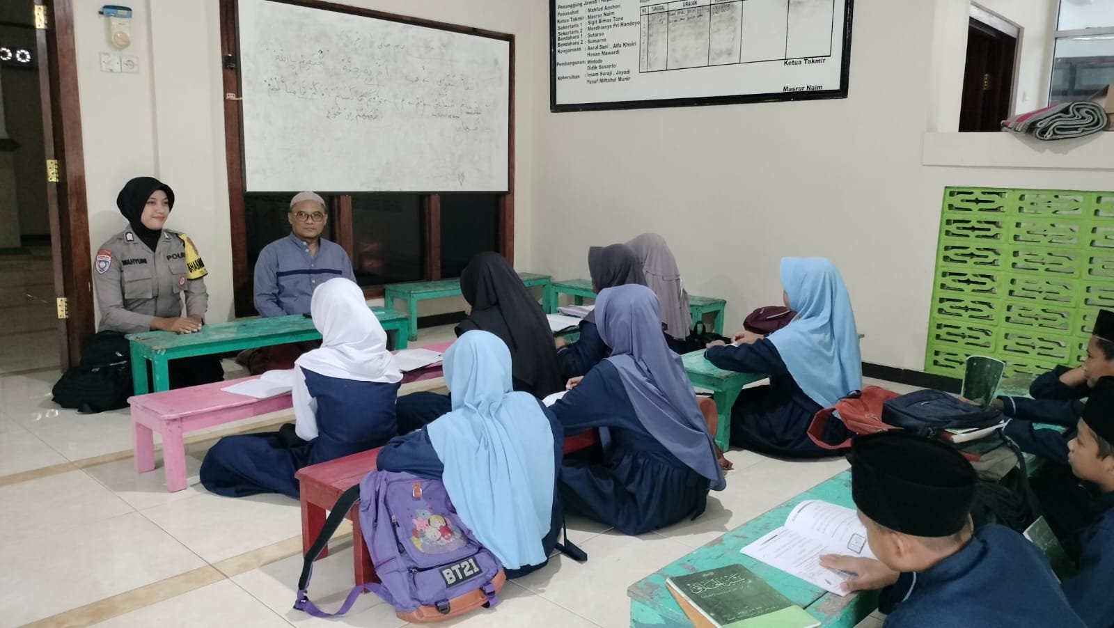 Selain itu, Polwan yang bersuamikan Polri ini juga sering berkomunikasi dengan pengurus masjid maupun guru ngaji di sana apabila tidak mengajar.
