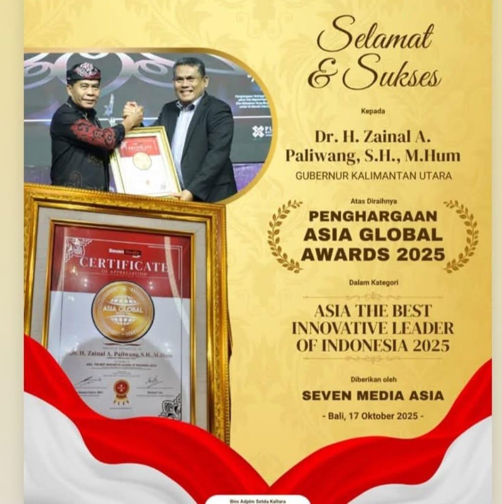 Prestasi gemilang yang membanggakan seluruh masyarakat Bumi Benuanta lagi-lagi ditorehkan oleh Gubernur Kalimantan Utara (Kaltara), Dr. H. Zainal Paliwang, SH, M.Hum yang kembali mendapatkan penghargaan dari Seven Media Asia dalam ajang spektakuler bertajuk “Asia Global Awards” dalam kategori “Asia The Best Innovative Leader Of Indonesia 2025”.
