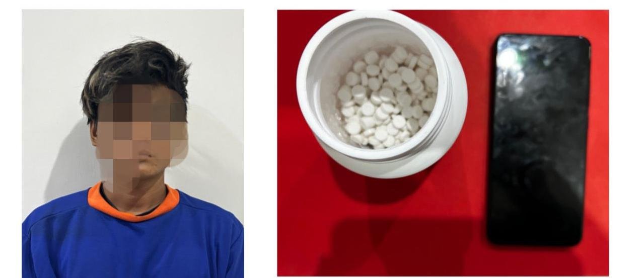Pada saat dilakukan penggeledahan ditemukan narkoba jenis pil dobel L sebanyak 833 butir dan 1 ponsel.