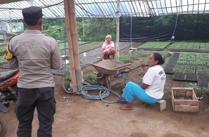 Kediri – Bidik86.com || Bhabinkamtibmas Desa Damarwulan, Kecamatan Kepung, Kabupaten Kediri, Bripka Imron S, aktif dampingi warga dalam pemanfaatan lahan perkebunan.