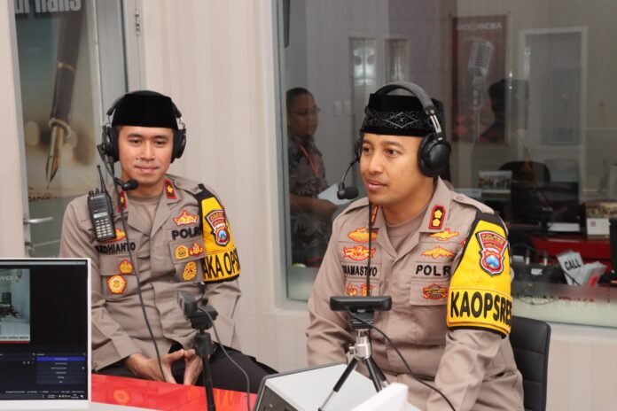 Kediri Kota – Bidik86.com || Kapolres Kediri Kota AKBP Bramastyo Priaji, S.H., S.I.K., M.Si. terus melakukan upaya dalam memberikan keamanan dan kenyamanan kepada masyarakat yang sedang melaksanakan mudik lebaran tahun 2025. Salah satunya dengan memberikan siaran langsung dengan Radio Andika mengenai situasi Arus lalu lintas H-1 Idul Fitri, Minggu 30/3/2025).