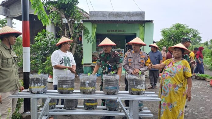 SIDOARJO – Bidik86.com || Polresta Sidoarjo Polda Jatim melalui Polsek Jabon bersama Koramil Jabon dan Pemerintah Desa Tambak Kalisogo menyerahkan bibit tanaman lombok, tomat, kangkung dan terong kepada warga pemilik lahan produktif di Dusun Bangunsari.