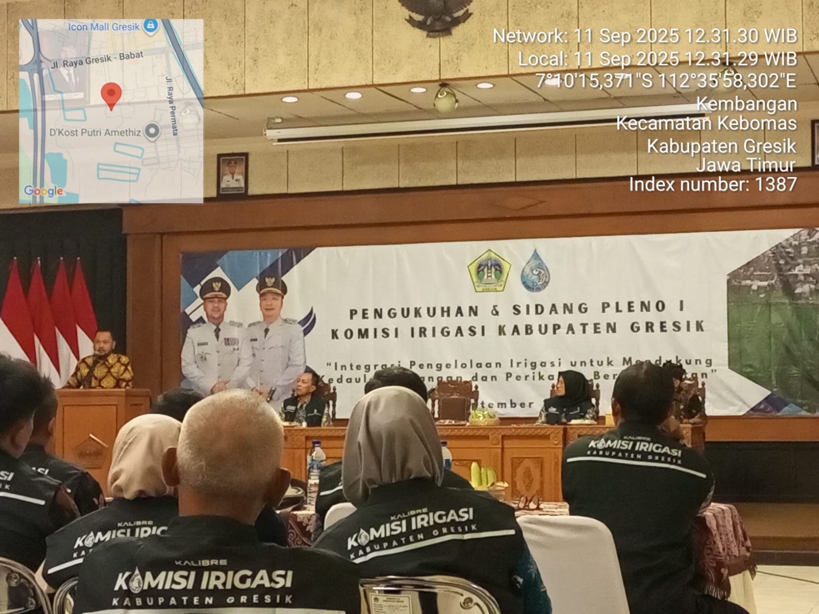 Pelaksanaan pengukuhan di ruang rapat Mandala Bhakti praja lt 4 kantor bupati Gresik,kamis 11/9/2025Bupati Gresik resmi mengukuhkan anggota Komisi Irigasi periode 2024-2027 . Kegiatan pengukuhan ini juga sekaligus menjadi Sidang Pleno pertama Komisi Irigasi . Komisi Irigasi yang akan dilantik berjumlah 33 orang anggota. Data ini terdiri atas 15 orang dari unsur pemerintah, 15 orang dari unsur non-pemerintah, serta 3 orang akademisi. Komposisi ini diharapkan mencerminkan kolaborasi yang seimbang antara kebijakan, praktik lapangan, dan kajian ilmiah. Dalam kesempatan penuh bahagia, Bupati Gresik, Fandi Akhmad Yani menegaskan, bahwa, pengukuhan merupakan momentum, harus menjadi titik balik bagi penguatan kerja sama lintas sektor dalam pengelolaan irigasi.