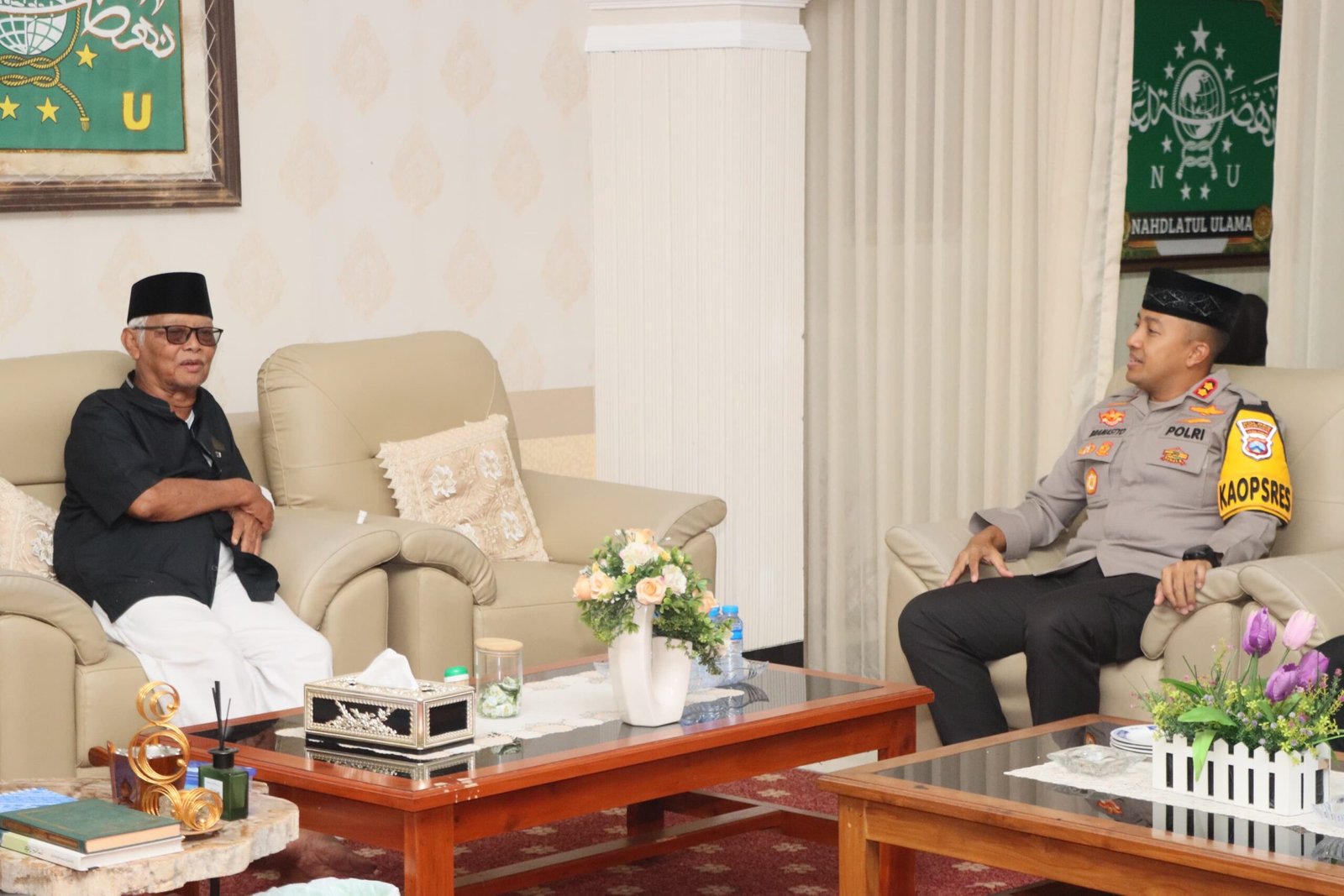 Silaturahmi ini pempererat hubungan kerja yang telah terjalin lama. Tentunya, Beliau (KH. Anwar Iskandar,red) adalah ulama sekaligus Ketua Umum MUI. Tentunya ulama merupakan cooling system (penyejuk) dimasyarakat jika terjadi konflik atau ganguan Kamtibmas,” ungkap AKBP Bramastyo Priaji.