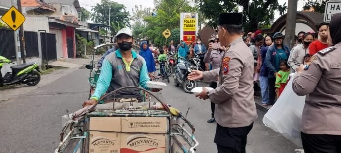 SIDOARJO – Bidik86.com || Membangun kepedulian kepada sesama di tengah melaksanakan tugas, Anggota Polsek Taman Polresta Sidoarjo menggelar Jumat Berkah di depan Mako Polsek Taman pada Jumat (7/2/2025).
