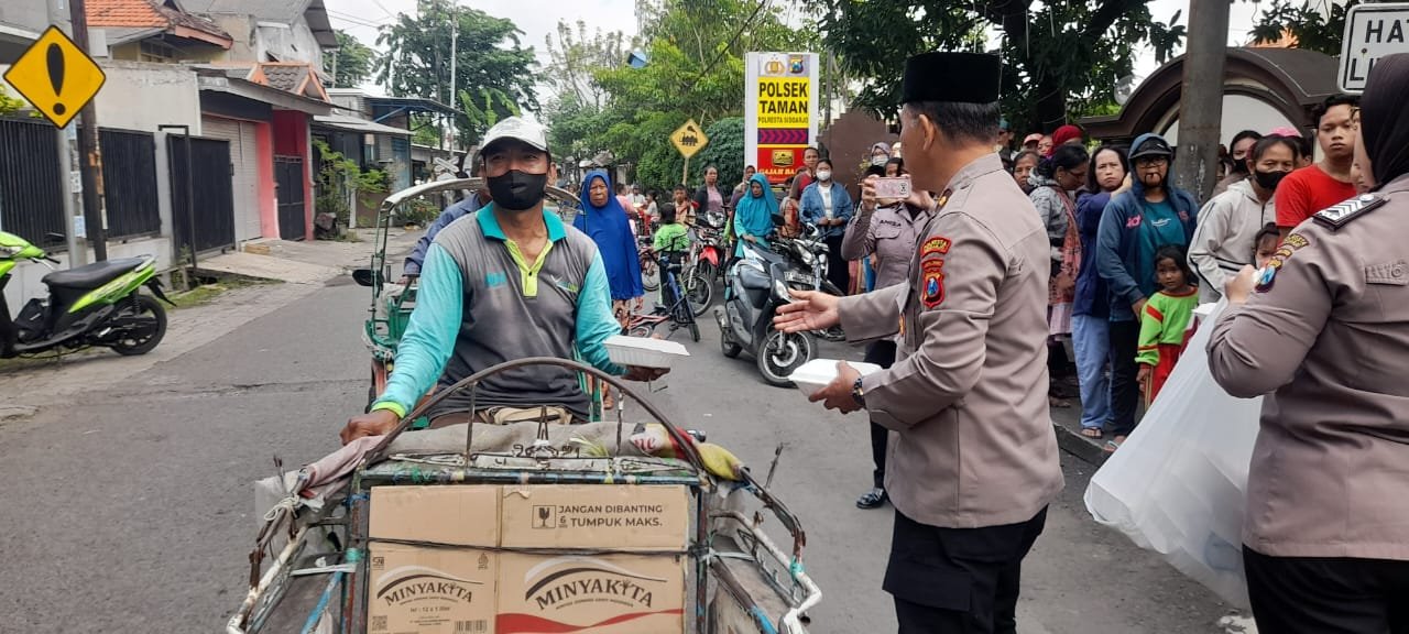 Jumat Berkah, Polisi Berbagi Nasi Kotak untuk Warga di Sidoarjo