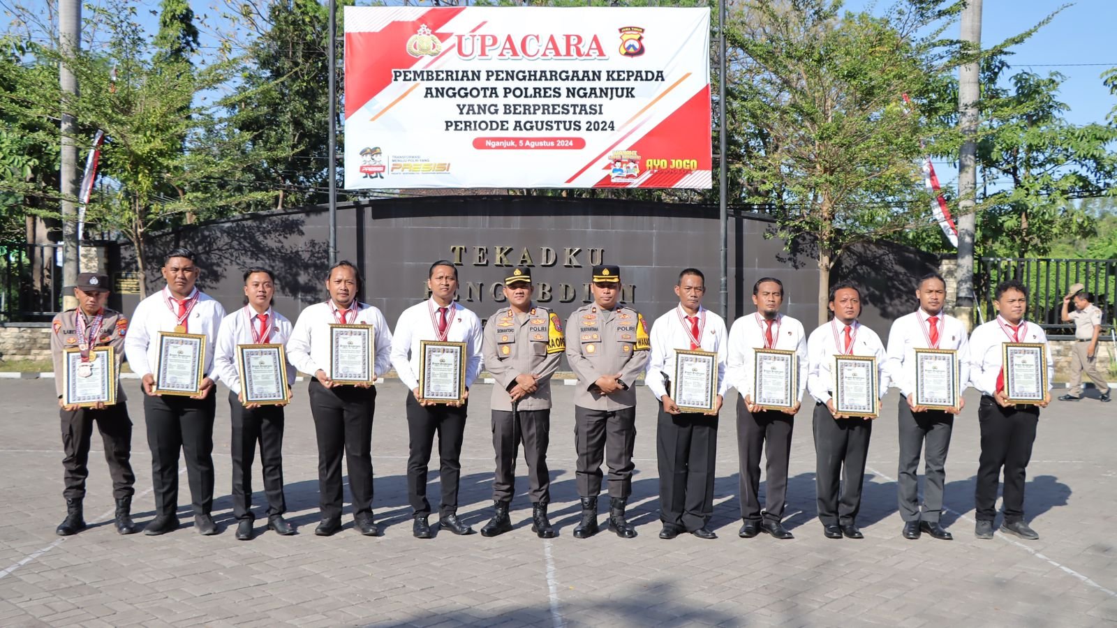 Piagam penghargaan tersebut diberikan secara seremonial dalam upacara yang dilangsungkan di halaman apel Polres Nganjuk dan diikuti oleh Pejabat utama (PJU) dan anggota Polres Nganjuk, Senin (05/8/2024).