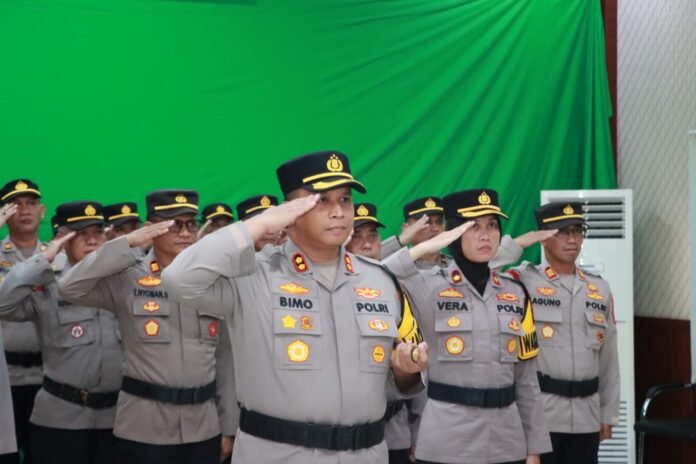 Memberikan keterangan, AKBP Bimo menyampaikan pentingnya menanamkan dan mempraktikkan nilai-nilai Tribrata dalam setiap aspek tugas Kepolisian.