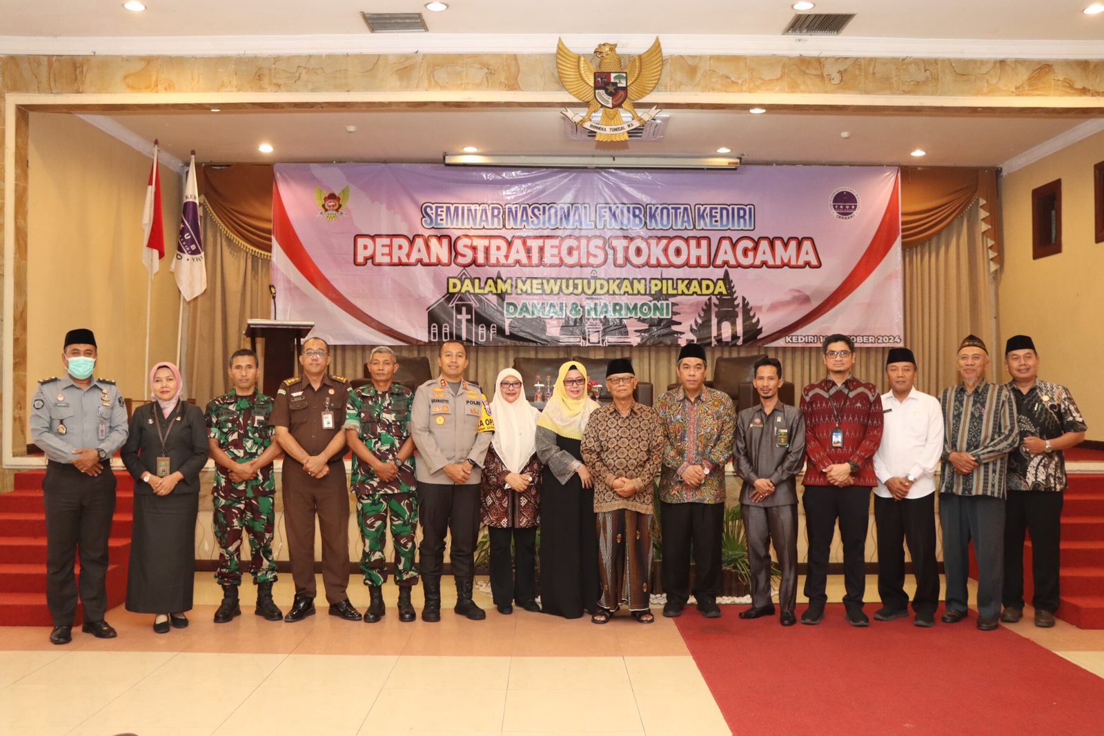 Seperti halnya kegiatan yang dilaksanakan oleh FKUB Kota Kediri, yaitu menggelar Seminar Nasional bertema “Peran Strategis Tokoh Agama Dalam Mewujudkan Pilkada Damai dan Harmoni”, terang Kapolres Kediri Kota