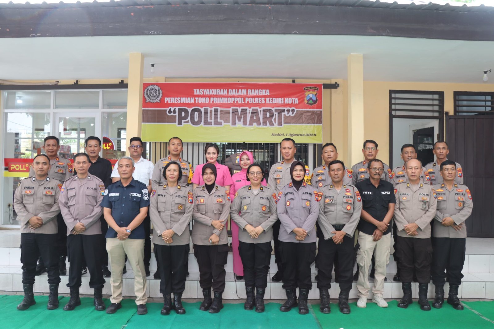 Turut hadir dalam grand opening Poll Mart Minimarket pejabat utama Polres Kediri Kota, Kapolsek Jajaran, Pengawas dan pengurus Primkoppol Polres Kediri Kota, Ketua Bhayangkari Cabang Kediri Kota beserta pengurus.