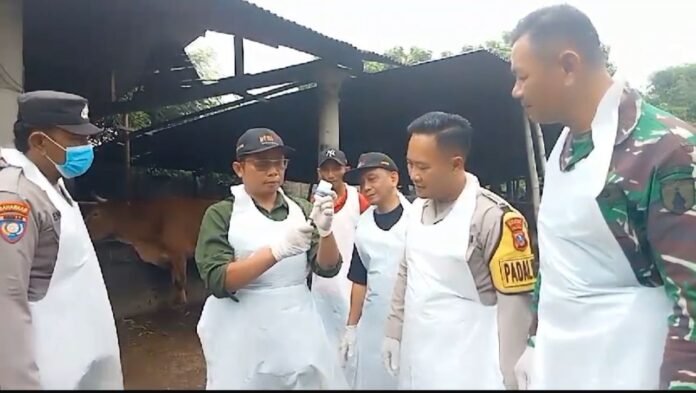 Kediri – Bidik86.com || Kapolsek Ngasem Iptu Ardian Wahyudi bersama Forkopimca dan tenaga medis vaksinasi hewan dari Dinas Peternakan Kabupaten Kediri melakukan vaksin terhadap hewan ternak warga guna mencegah penularan Penyakit Mulut dan Kuku (PMK), di Desa/Kecamatan Ngasem Kabupaten Kediri, pada (27/1/2025).