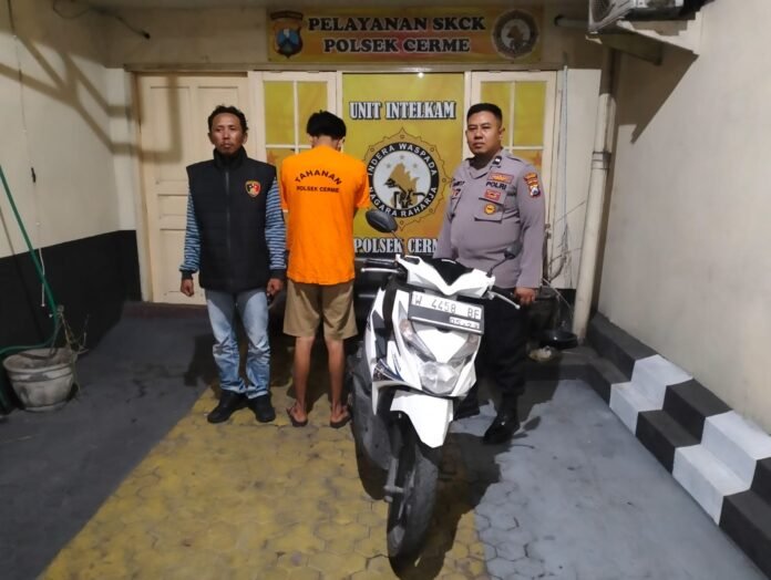 GRESIK – Bidik86.com || Polsek Cerme Polres Gresik berhasil mengungkap kasus pencurian sepeda motor yang terjadi di rumah kos Perum Banjarsari, Kecamatan Cerme, Kabupaten Gresik.