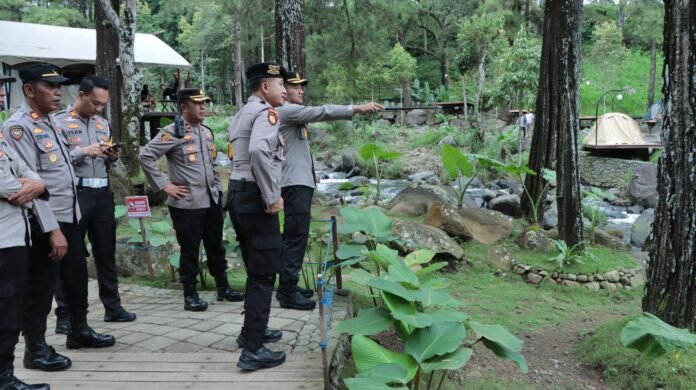Nganjuk – Bidik86.com || Dalam rangka mengantisipasi lonjakan pengunjung selama libur Lebaran, Kapolres Nganjuk AKBP Siswantoro, S.I.K., M.H., didampingi Kapolsek Loceret IPTU Triyono dan sejumlah Pejabat Utama (PJU) Polres Nganjuk, melakukan pengecekan langsung ke lokasi wisata Jolotundo di Kecamatan Loceret, jumat (4/4/2025).
