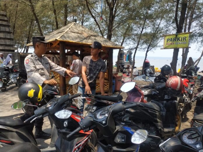 Selain atensi jalur lalu lintas, lokasi wisata pantai tak luput dari pola pengamanan yang dilakukan oleh Polres Probolinggo Polda Jatim.