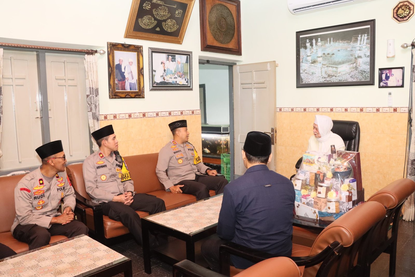 Selesai silaturahimi ke KH Anwar Mansyur, Kapolres Kediri Kota beserta rombongan melanjutkan ke silaturahmi ke KH. Kafabihi Mahrus yang juga pengasuh Ponpes Lirboyo Kediri