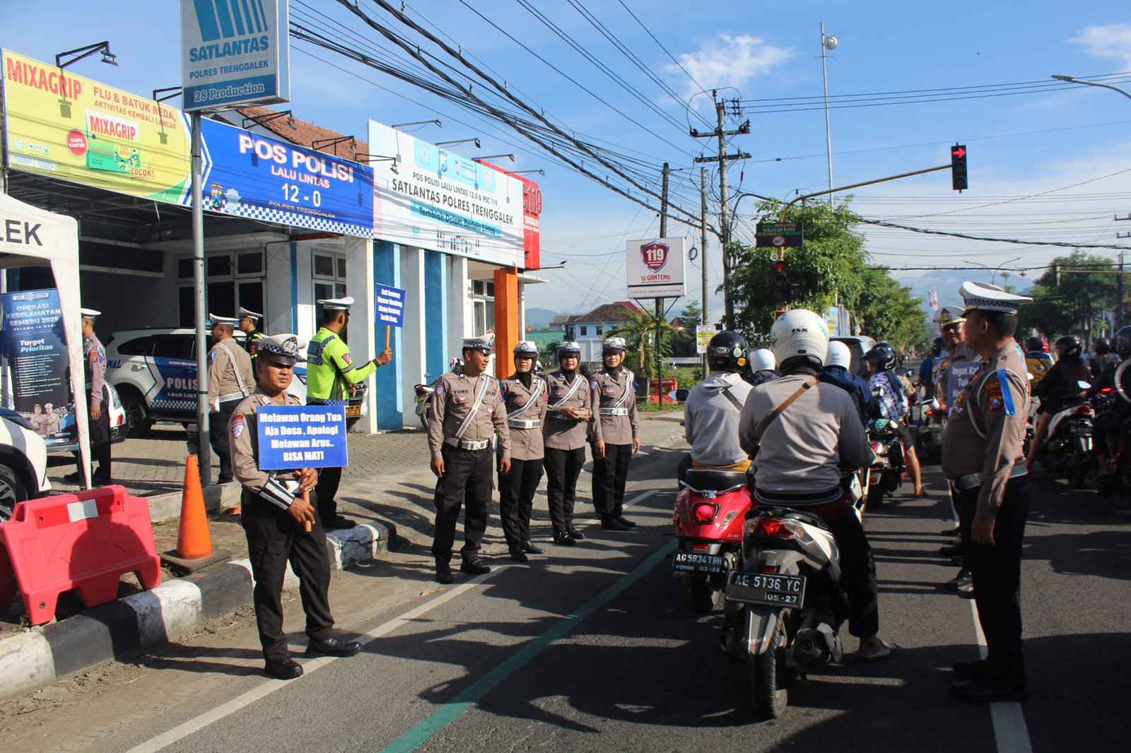 Kapolres Trenggalek AKBP Indra Ranu Dikarta, S.I.K., M.Si. melalui Kasatlantas AKP Agus Prayitno, S.H. menuturkan, pada dasarnya kegiatan hari ini merupakan rangkaian dari Operasi Keselamatan Semeru 2025.