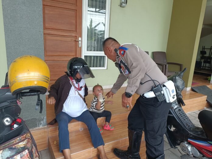 “Tadi kita melaksanakan kegiatan operasi keselamatan di Jalan Kawi. Kebetulan ada ibu-ibu membawa anaknya kecil kondisinya hamil,” katanya.