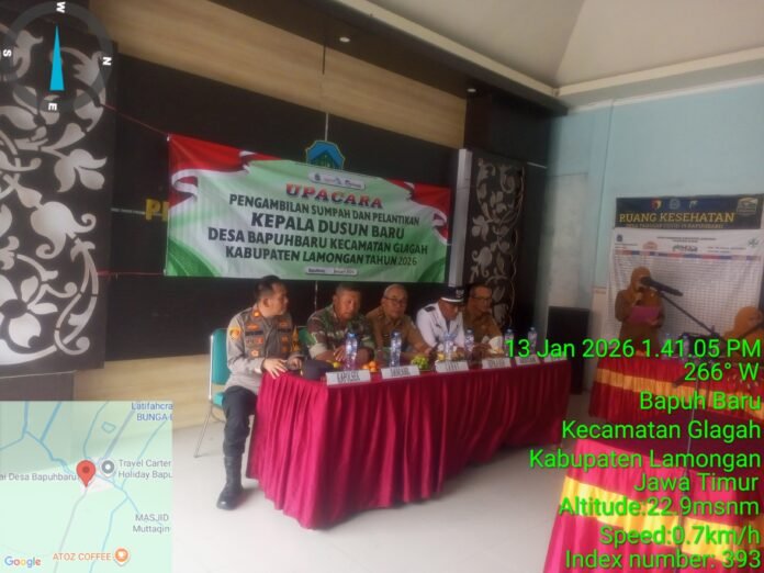 Bidik86.com || Lamongan – Pemerintah Desa bapuh baru menyelenggarakan Pelantikan dan Pengambilan Sumpah kepala dusun baru . formasi Jabatan Kepala Dusun baru pada tanggal 13 Januari 2026, bertempat di Balai Desa Kepuh Baru kecamatan Glagah kabupaten Lamongan . Kegiatan ini merupakan bagian dari proses pengisian kepala Dusun Baru, guna meningkatkan kinerja pemerintahan dan pelayanan kepada masyarakat.