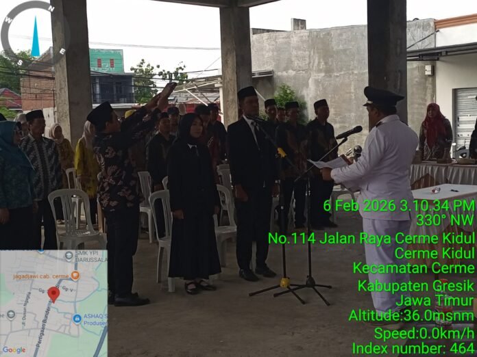 Bidik68.com || Gresik – Pemerintah Desa Cerme Kidul, Kecamatan Cerme, Kabupaten Gresik, resmi melantik dan mengambil sumpah jabatan dua perangkat desa, Jumat (06/02/2026), bertempat di Balai Desa Cerme Kidul.