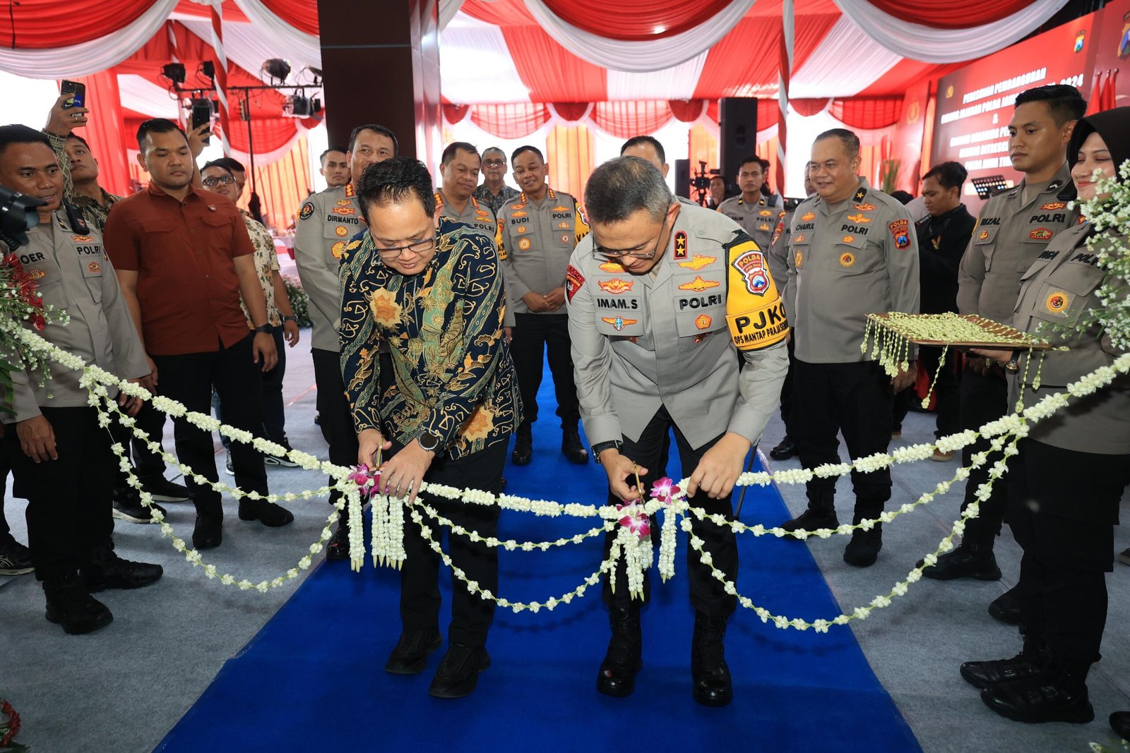 SURABAYA – Bidik86.com || Kapolda Jawa Timur Irjen Pol Drs Imam Sugianto,M.Si bersama Pj Gubernur Jawa Timur Adhy Karyono didampingi Wakapolda Jatim Brigjen Pol Pasma Royce meresmikan pembangunan Gedung Bidhumas Polda Jatim.