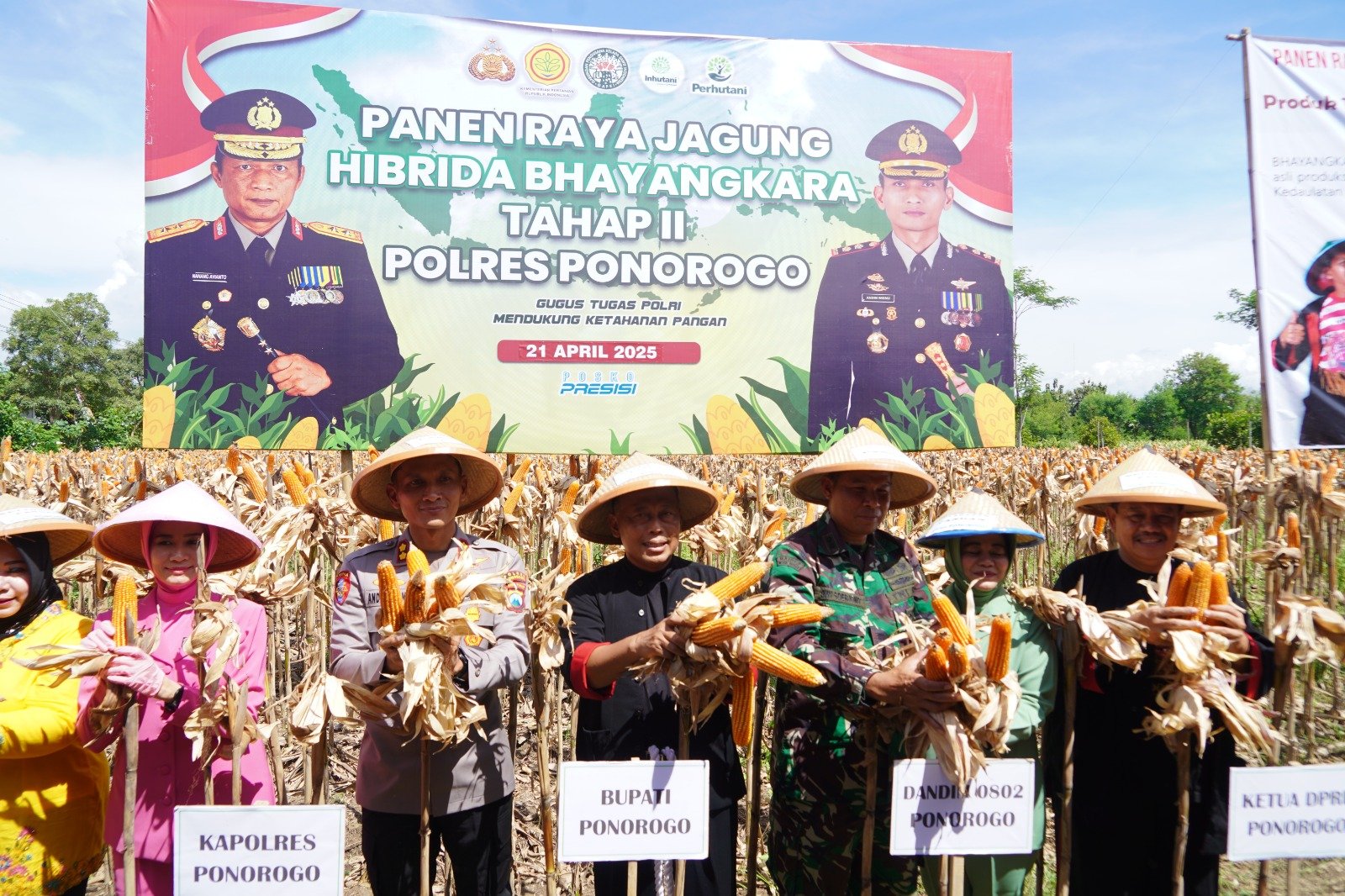 PONOROGO – Bidik86.com || Suasana hangat penuh semangat mewarnai pelaksanaan Panen Raya Jagung Hibrida Bhayangkara Tahap II yang digelar pada Senin (21/4/2025) di kawasan Jl. Sekar Pudak, Kelurahan Purbosuman, Kecamatan/Kabupaten Ponorogo.