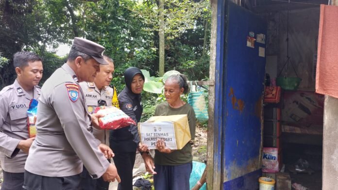 Bantuan tersebut diserahkan langsung oleh Kasat Binmas Polres Kediri, AKP Barkah Samsul, sebagai bentuk kepedulian terhadap warga lanjut usia yang hidup dalam keterbatasan.