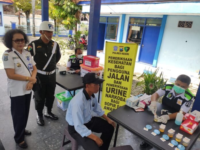 Pada pemeriksaan tes urine ini, Satlantas Polres Kediri bersama, Dishub Provinsi Jawa Timur, Dishub Kediri. Pemeriksaan tes urine ini dari Polres Kediri melibatkan Satresnarkoba dan tim Dokkes Polres Kediri.