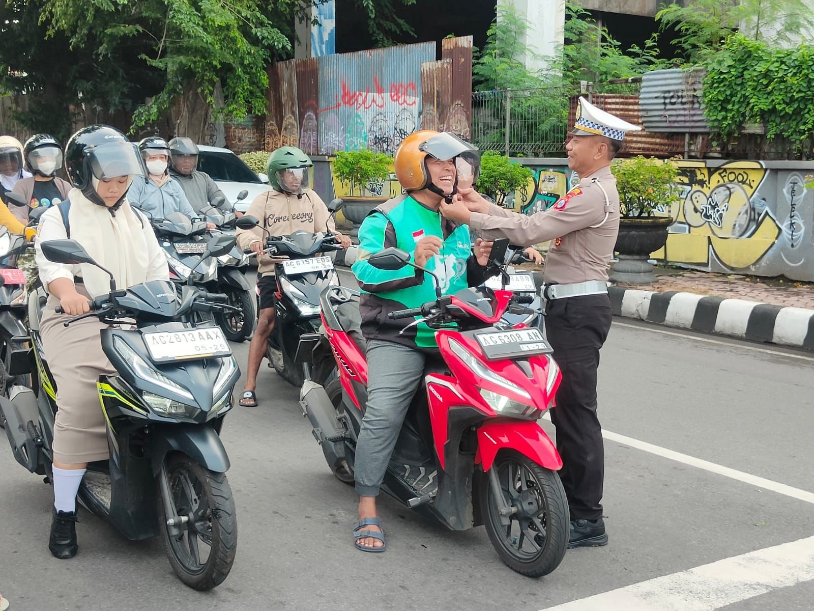 Kegiatan ini bertujuan mengingatkan masyarakat untuk selalu memprioritaskan keselamatan dalam berkendara. Para petugas memberikan pesan agar pengguna jalan memastikan helm terpasang dengan benar hingga berbunyi klik untuk memastikan keamanan saat berkendara.