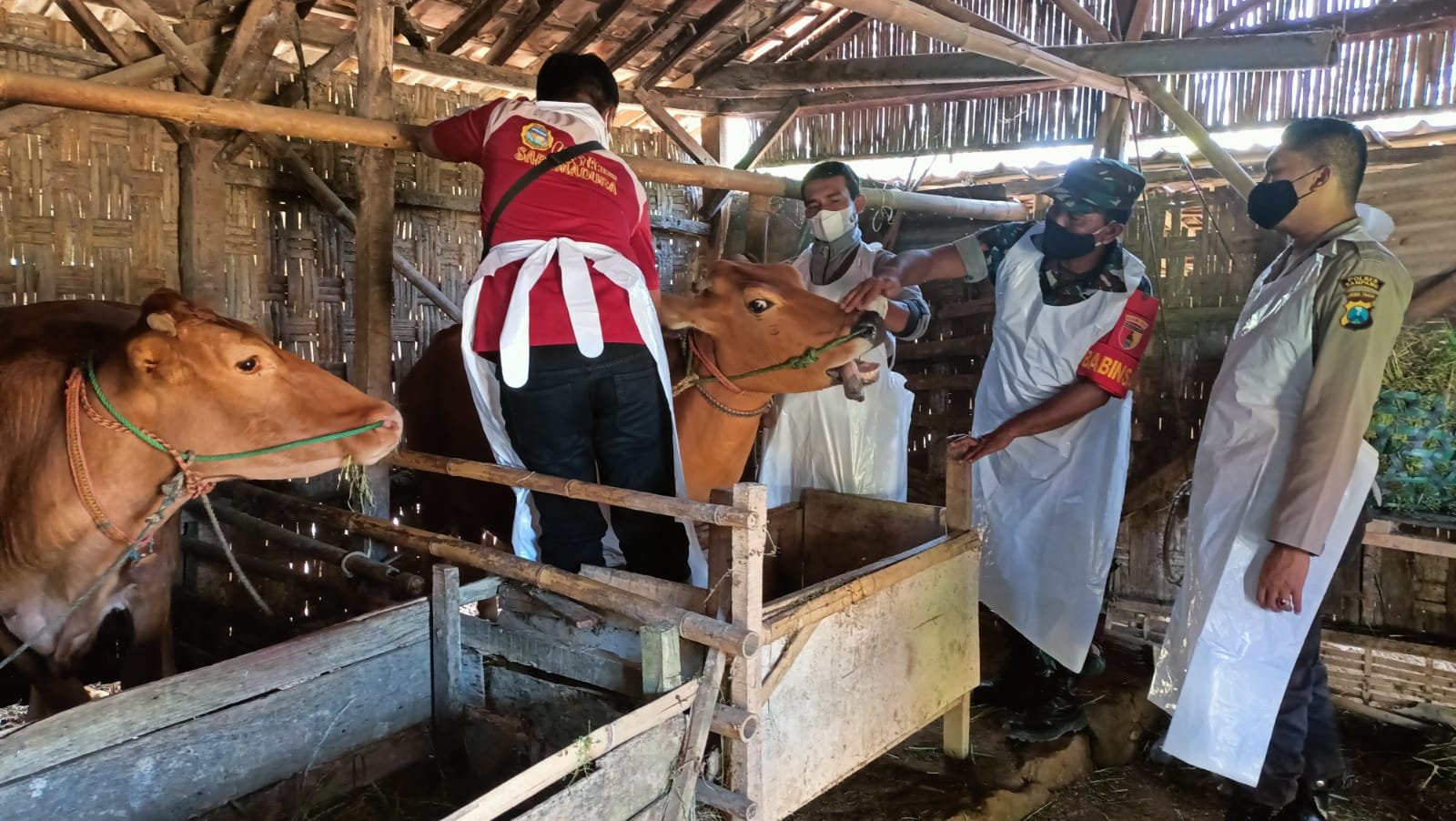 Sebagai tindak lanjut perintah Kapolres Sampang AKBP Hartono, Kasihumas Polres Sampang memberikan contoh dukungan Polres Sampang dalam pencegahan PMK di Kabupaten Sampang.