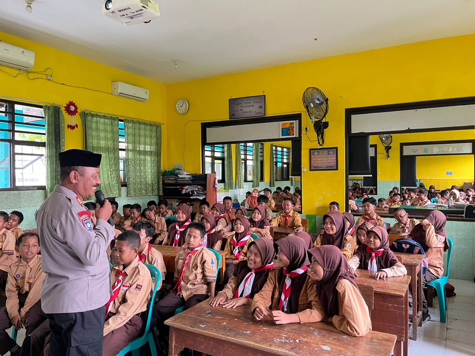 Polsek Taman Edukasi Pelajar SDN 2 Sepanjang tentang Anti-Bullying dan Tertib Berlalu Lintas