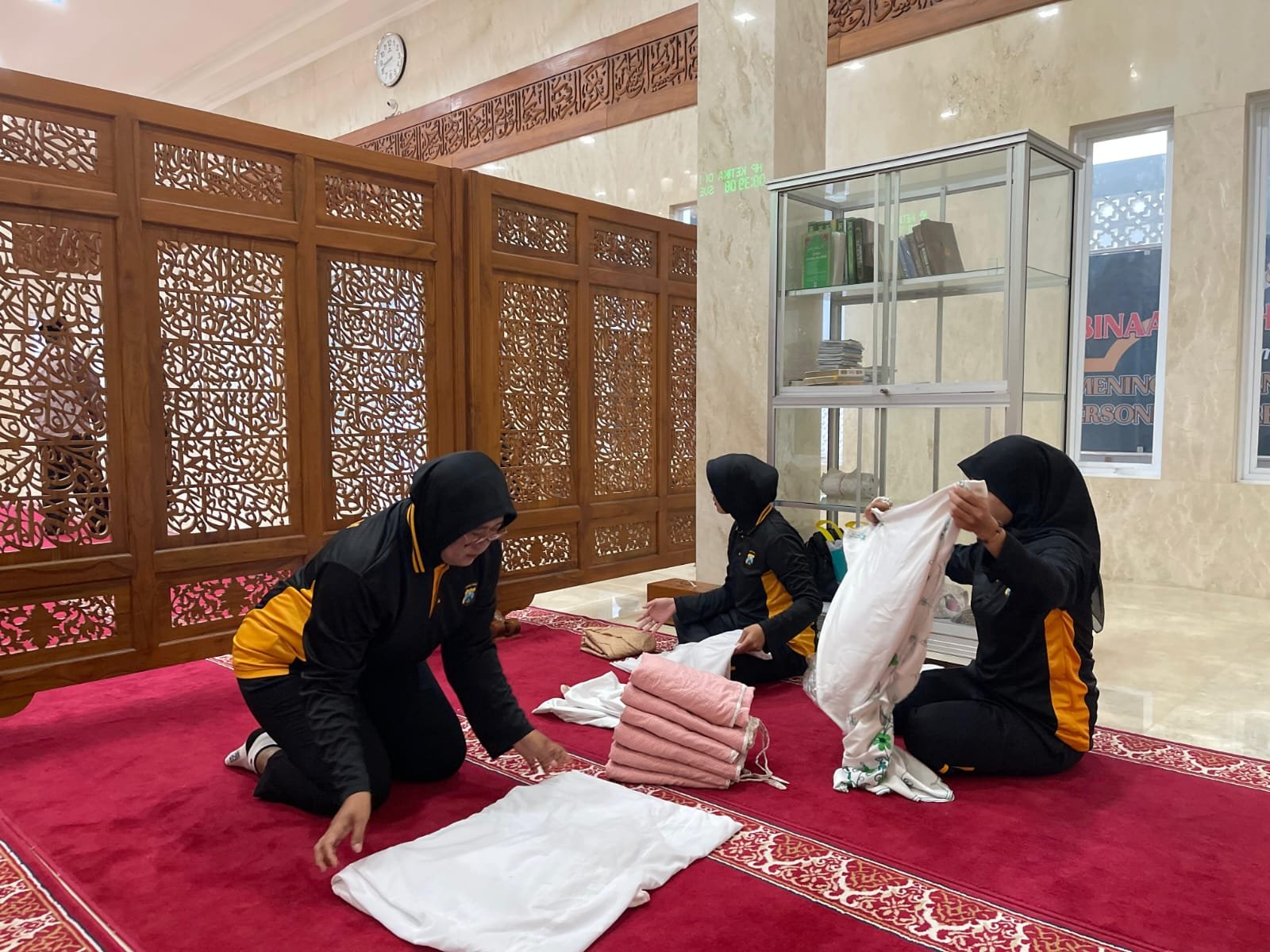 Selain bersih – bersih, juga memberikan alat kebersihan dan tali asih kepada Pendeta Gereja dan Takmir Masjid.