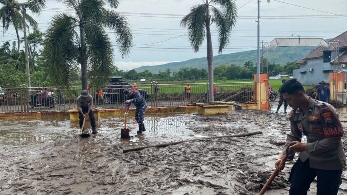Kapolres Situbondo AKBP Rezi Dharmawan, S.I.K., M.I.K. mengungkapkan pasca terjadi banjir di wilayah Kecamatan Kendit, Polres Situbondo menerjunkan puluhan personel termasuk Sat Brimob Polda Jatim untuk membantu masyarakat membersihkan material lumpur sisa banjir di pemukiman warga yang terdampak banjir.