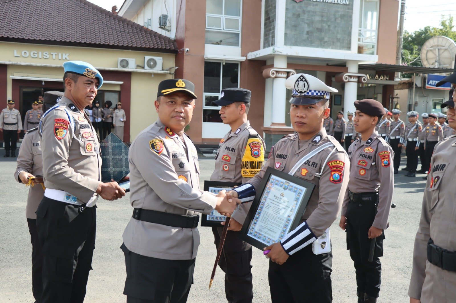 Penghargaan tersebut diberikan langsung oleh Kapolres Pamekasan disaksikan oleh sejumlah anggota lain yang digelar di Lapangan apel Mapolres Pamekasan, Rabu (5/3/2025).