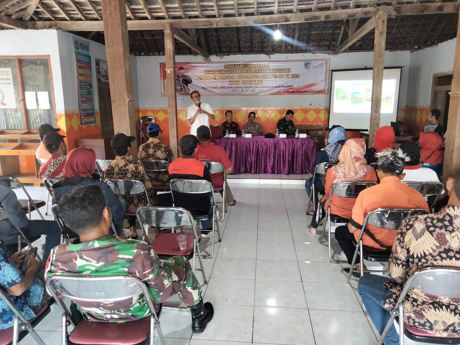 Kediri – Bidik86.com || Guna meningkatkan kemampuan Lembaga Desa, TNI Manunggal Desa (TMMD) ke 122 TA. 2024 Kodim 0809/Kediri bekerjasama dengan Dinas Pemberdayaan Mayarakat dan Pemerintah Desa (DPMPD) Kabupaten Kediri menggelar kegiatan sosialisasi peningkatan Lembaga Desa yang digelar di Balai Desa Pagung Kec. Semen Kab. Kediri. Jumat, 25/10/2024).